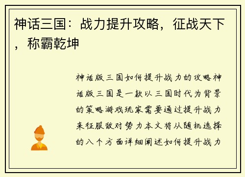 《神魔争霸》是一款史诗级仙魔争霸手游,带你进入一个宏大的仙魔世界。如果你想在游戏中成为叱咤风云的霸主,一份详尽的神魔争霸攻略必不可少。 阵容搭配 阵容是影响战力发挥的关键因素。每种职业都有独特的技能和定位,合理搭配可以发挥出强大的协同效应。前排输出、后排辅助、治疗和控制等角色缺一不可。推荐的热门阵容...